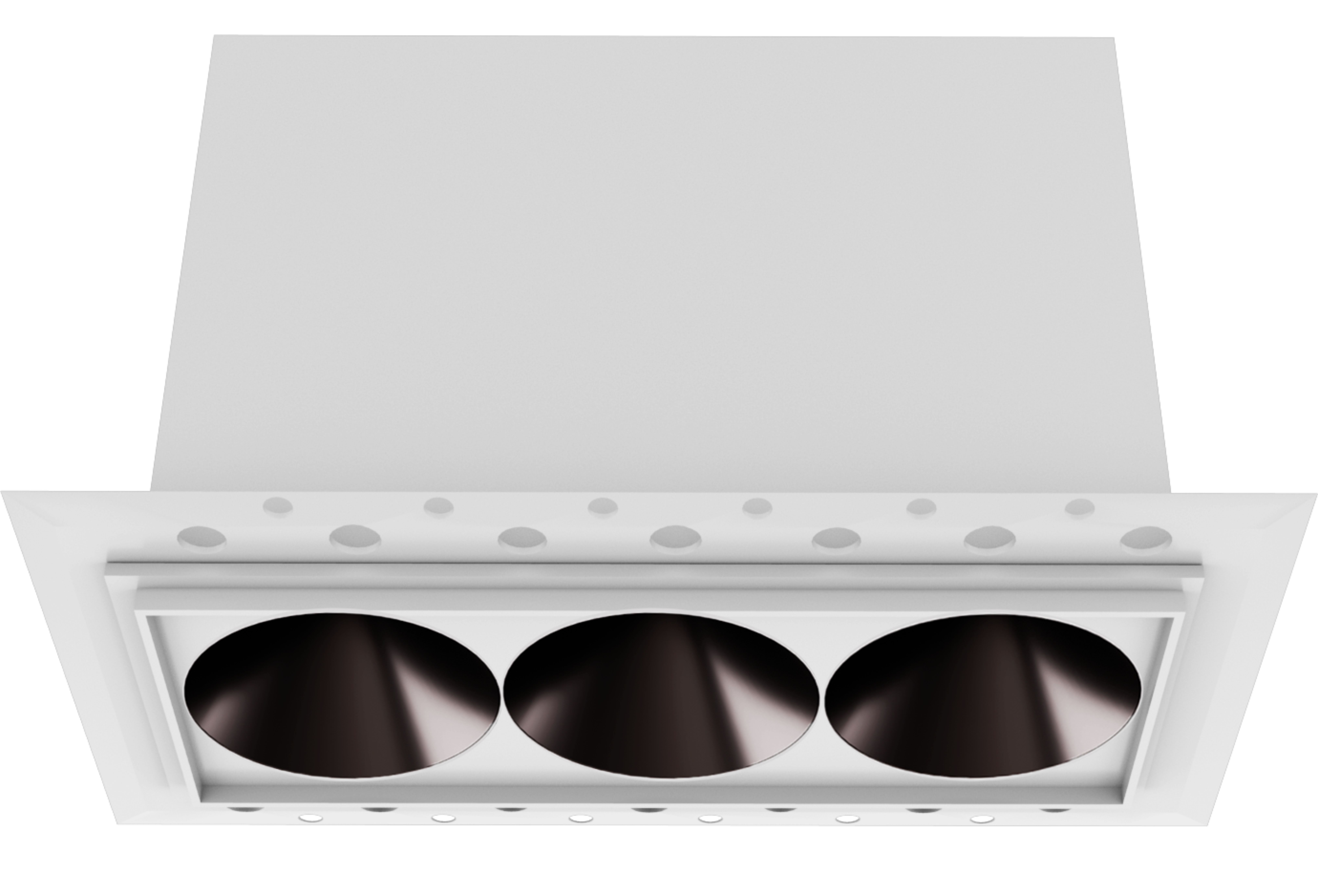 The Aeonic Circle 1×3 delivers elegant, diffused illumination through three precisely aligned circular reflectors. Designed for architectural harmony, it provides soft, balanced light suitable for feature walls, lounges, and high-end retail environments. The trimless model incorporates a push-to-release ceiling protection system for effortless installation and maintenance access