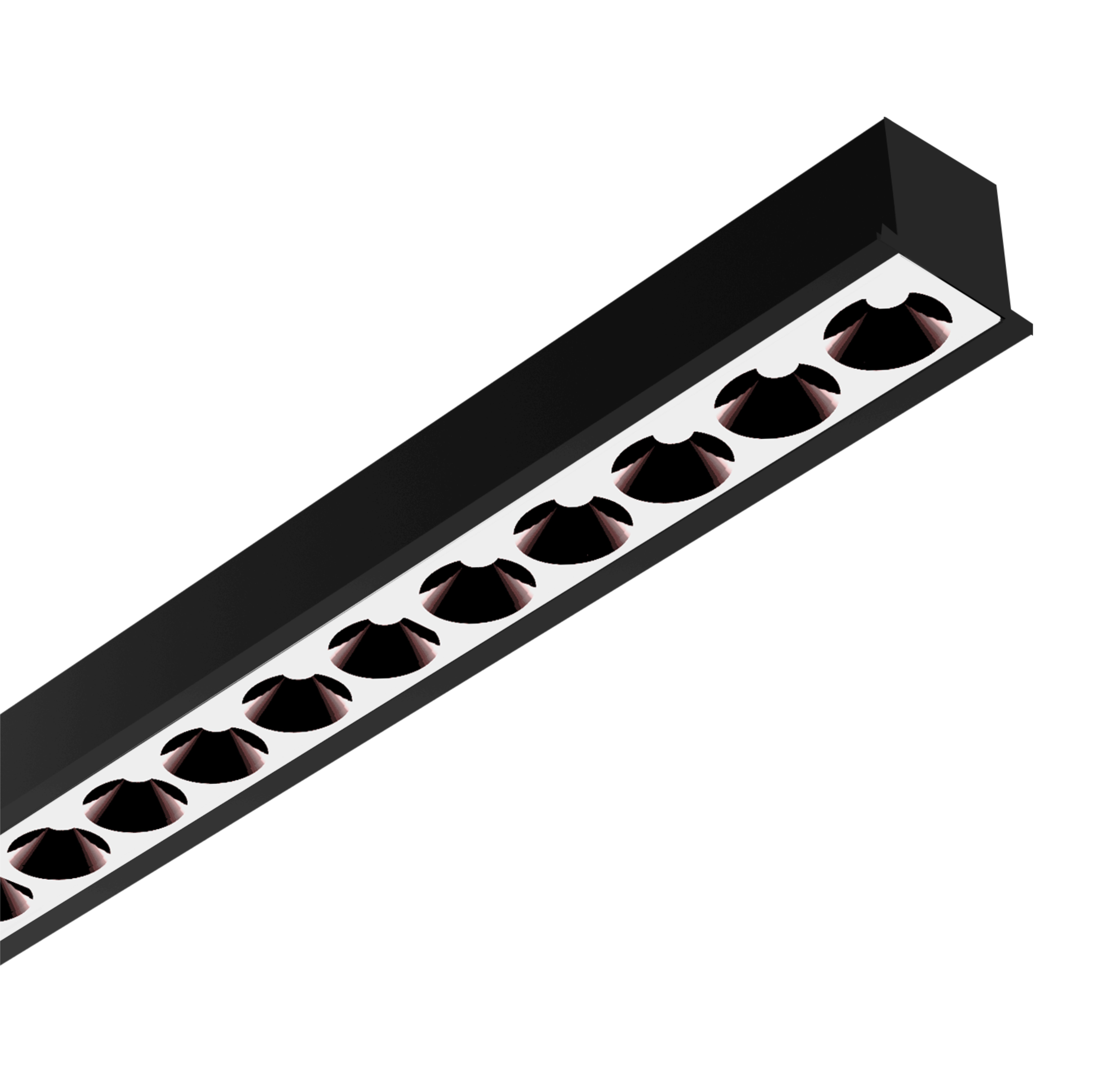 The Recessed Circle fixture offers uniform general illumination with a softer, wider light spread than the Brick module, all within the same minimalist recessed profile. The circular aperture creates a classic downlight aesthetic that provides a blanket of comfortable, even light. It is ideal for general office lighting, hallways, and large common areas that require continuous, comfortable ambient illumination with excellent color quality