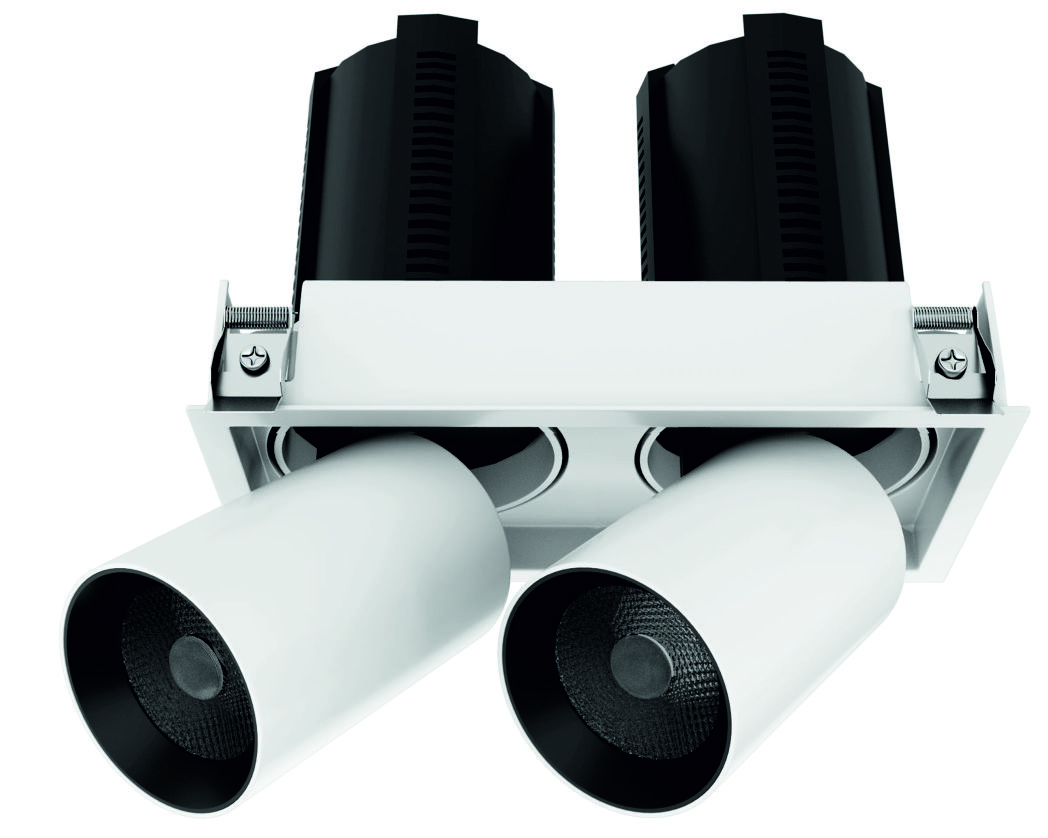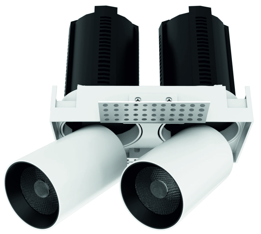 Tenace Pullout Frame models (Trim/Trimless) are the ultimate linear accent fixture, featuring two independently adjustable light engines within a single rectangular frame. These fixtures boast a mechanism that allows both light sources to be pulled out of the ceiling and fully articulated with 360° rotation and high-angle tilt. This delivers twice the accent power with an unparalleled range of light aiming, ideal for lighting features across wide areas or long corridors.