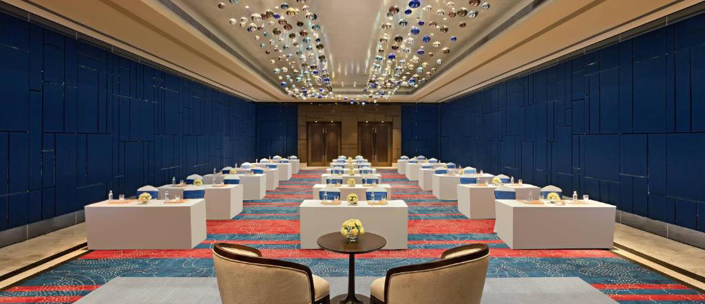 Sheraton Whitefield is a prominent hospitality destination in Bangalore, known for its modern design and high-end guest experience. For this project, we executed all lighting packages, including the hotel and its expansive convention center. The convention center required a highly flexible and dynamic lighting system, which we delivered through a fully RGB-controlled setup, managed seamlessly via a single touch panel. This allowed the space to transform instantly for weddings, corporate events, and large gatherings with effortless scene control. Our high-quality execution earned us a Certificate of Appreciation from the Sheraton team, recognizing our commitment to excellence